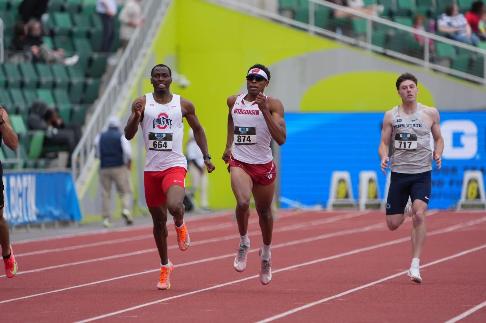 - Bertrand ranks second nationally in the women’s 100m with a time of 10.94 seconds (Texas Relays) and the 40th ranked women’s 200m of 22.99 (Big Ten Outdoor Championships prelims). Conde also qualified for the women’s 200m, having a season best 23.33 seconds at the Texas Relays.