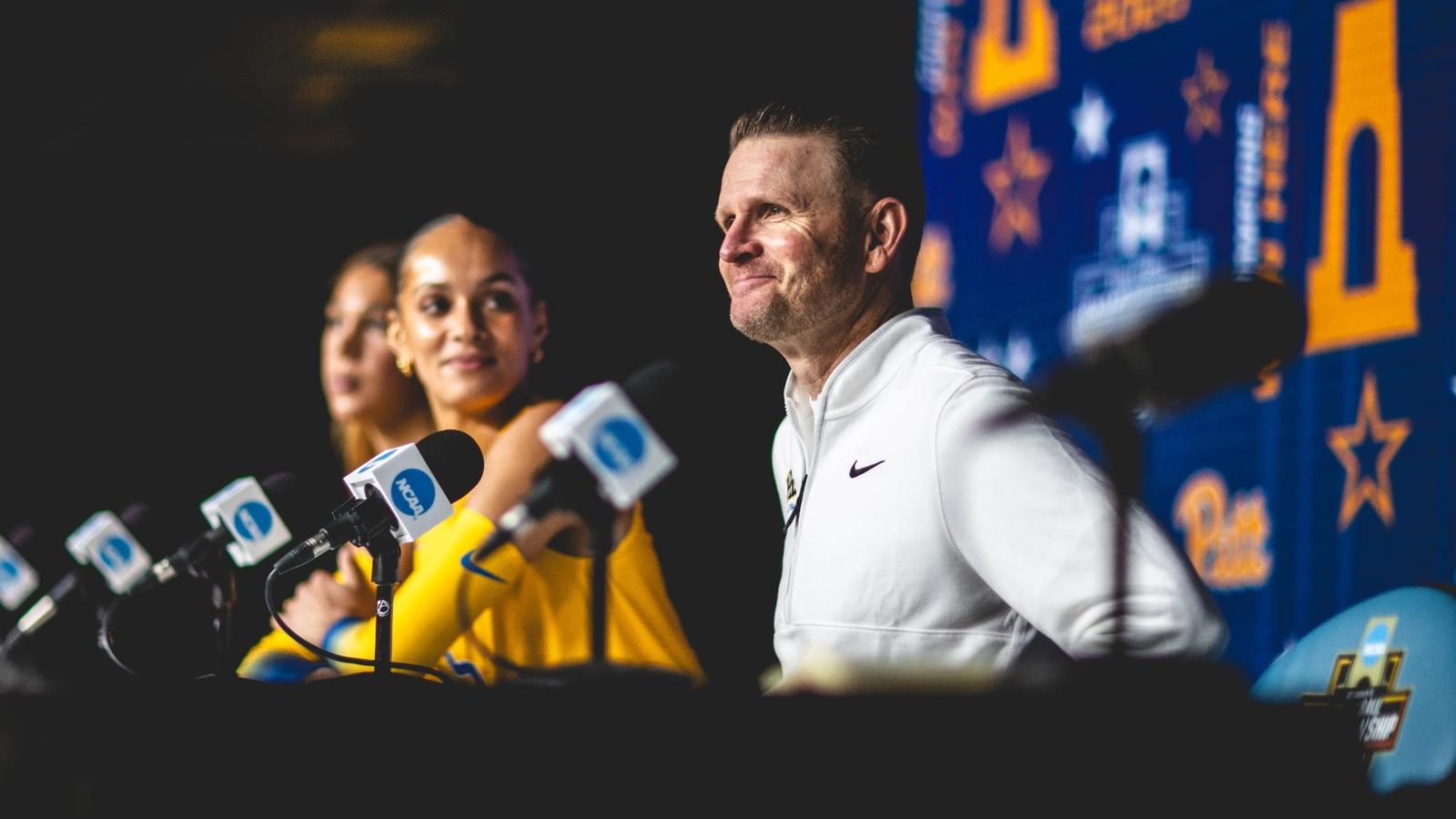 KANSAS CITY – Dan Fisher sat at the podium Wednesday afternoon inside the T-Mobile Center, fielding questions about roster turnover, the transfer portal and about how his Pitt volleyball program keeps reloading year after year. As the Panthers prepare to make their fifth consecutive appearance in the national semifinal on Thursday night against Texas A&M, Fisher reflected on the program he’s built.
