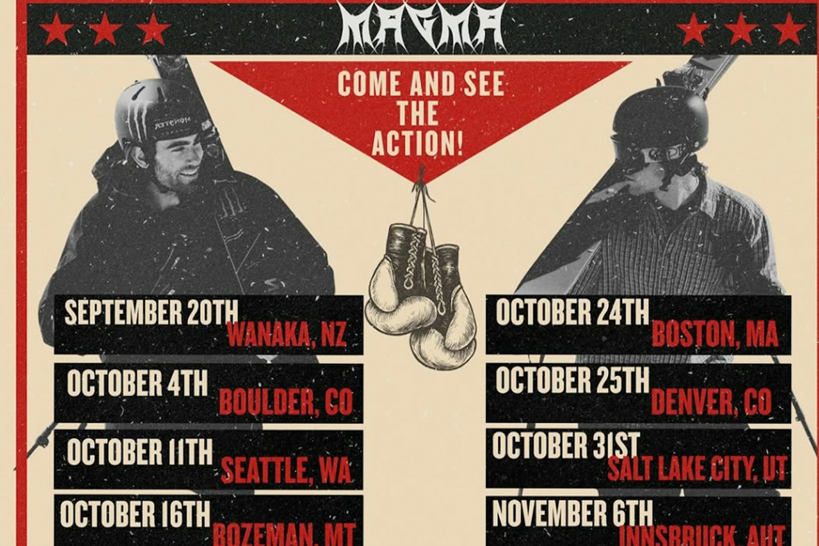Alongside filmmaker extraordinaire Owen Dahlberg, Alex Hall and Hunter Hess have announced that MAGMA is bringing the heat to skiers everywhere this fall. From New Zealand to Boston, Seattle to Innsbruck, the fellas are hitting the road and taking the 2025 MAGMA Film Tour worldwide.