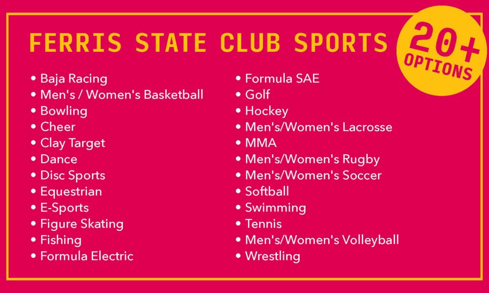 Ferris State has around 20 athletic clubs that students across campus participate in. Club sports provide students with the opportunity to participate in a range of...