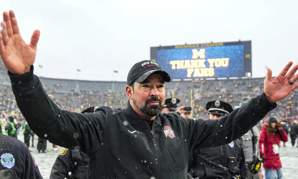 Wisconsin head coach Luke Fickell on the snowy field wearing a Badgers hoodie during the Minnesota matchup. Photo credit: Allan Ganther. There was a moment, not...