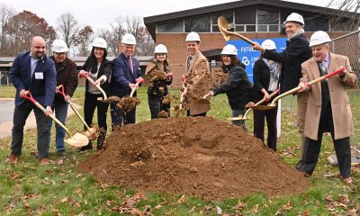 Officials toss the ceremonial dirt during the groundbreaking ceremony of Empire State Youth Orchestra’s future home, the Capital Region Youth Music Center on Tuesday in Schenectady....