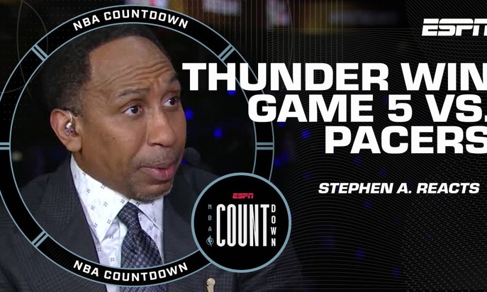 NBA Countdown’s Malika Andrews, Stephen A. Smith, Bob Myers and Kendrick Perkins react to the Oklahoma City Thunder’s …