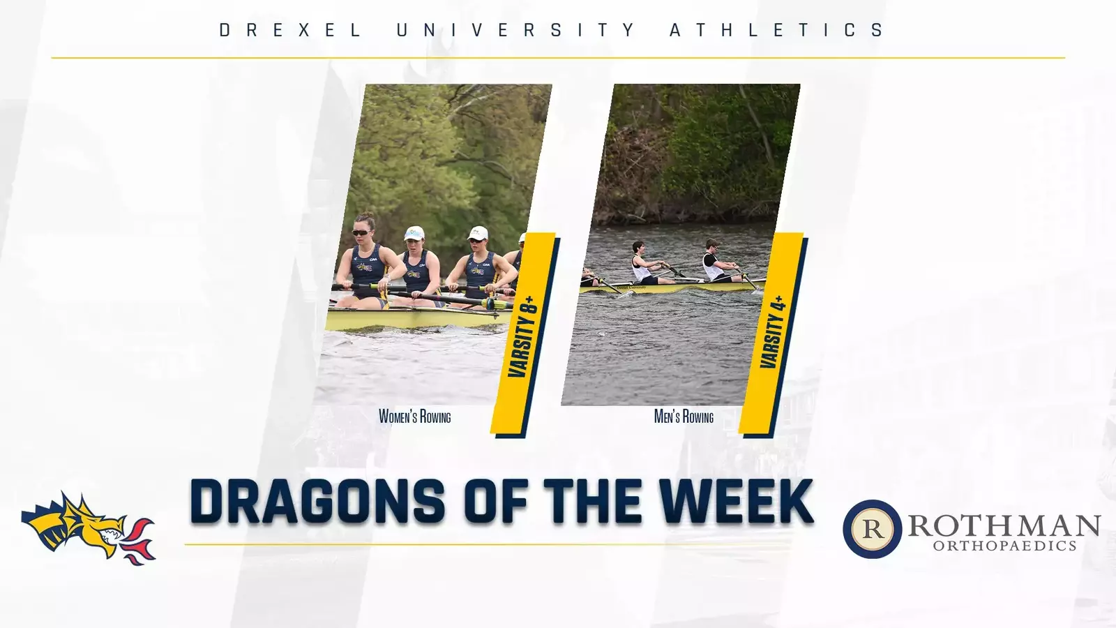 PHILADELPHIA – Men’s Varsity 4+ and Women’s Varsity 8+ named Drexel Dragons of the Week, presented by Rothman Orthopedics, for the week of May 5-11.