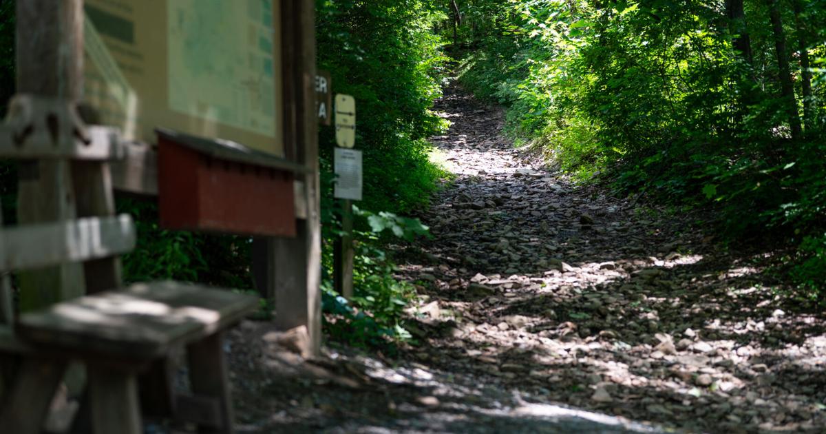 The entrance to the Shingletown Gap hiking trails on Sunday, June 29, 2025 in State College, Pa.