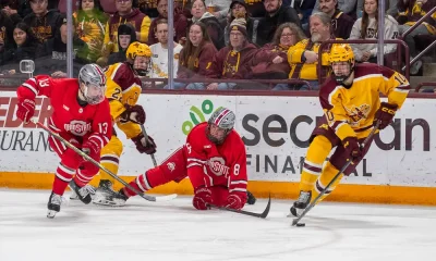 Minnesota and Ohio State battle in a game Feb. 22, 2025 at 3M Arena at Mariucci in Minneapolis, Minn. (photo: Jim Rosvold). The Big Ten men’s...