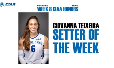 Story Links Charlotte, NC -The Central Intercollegiate Athletic Association (CIAA) named Fayetteville State volleyball player, Giovanna Teixeira, as the week #8 CIAA Volleyball...