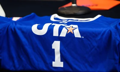 A UTA women’s flag football jersey lies on a table during a press conference May 15 at College Park Center. File photo / Joel Solis For...