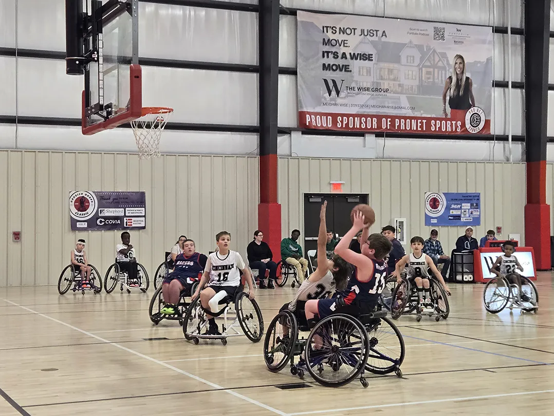 The basketball courts at Pro Net Sports in Fishers are always full on weekends. But Dec. 13-14, the sounds of dribbling and buzzer beaters were accompanied by the whirl of wheels, as young athletes with RHI Racers adaptive basketball program hosted the 2025 Hoosier Hoops Classic wheelchair basketball tournament.