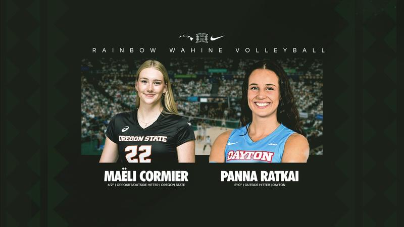 Maëli Cormier, a 6-foot-2 opposite/outside hitter who spent her freshman year at Oregon State, and Panna Ratkai, a 5-foot-10 outside hitter who played at Dayton last season, have signed with the Rainbow Wahine and will enroll at UH for the spring semester. Cormier will have three seasons of eligibility remaining while Ratkai will spend her senior season at UH and both bring international experience with them to Mānoa.