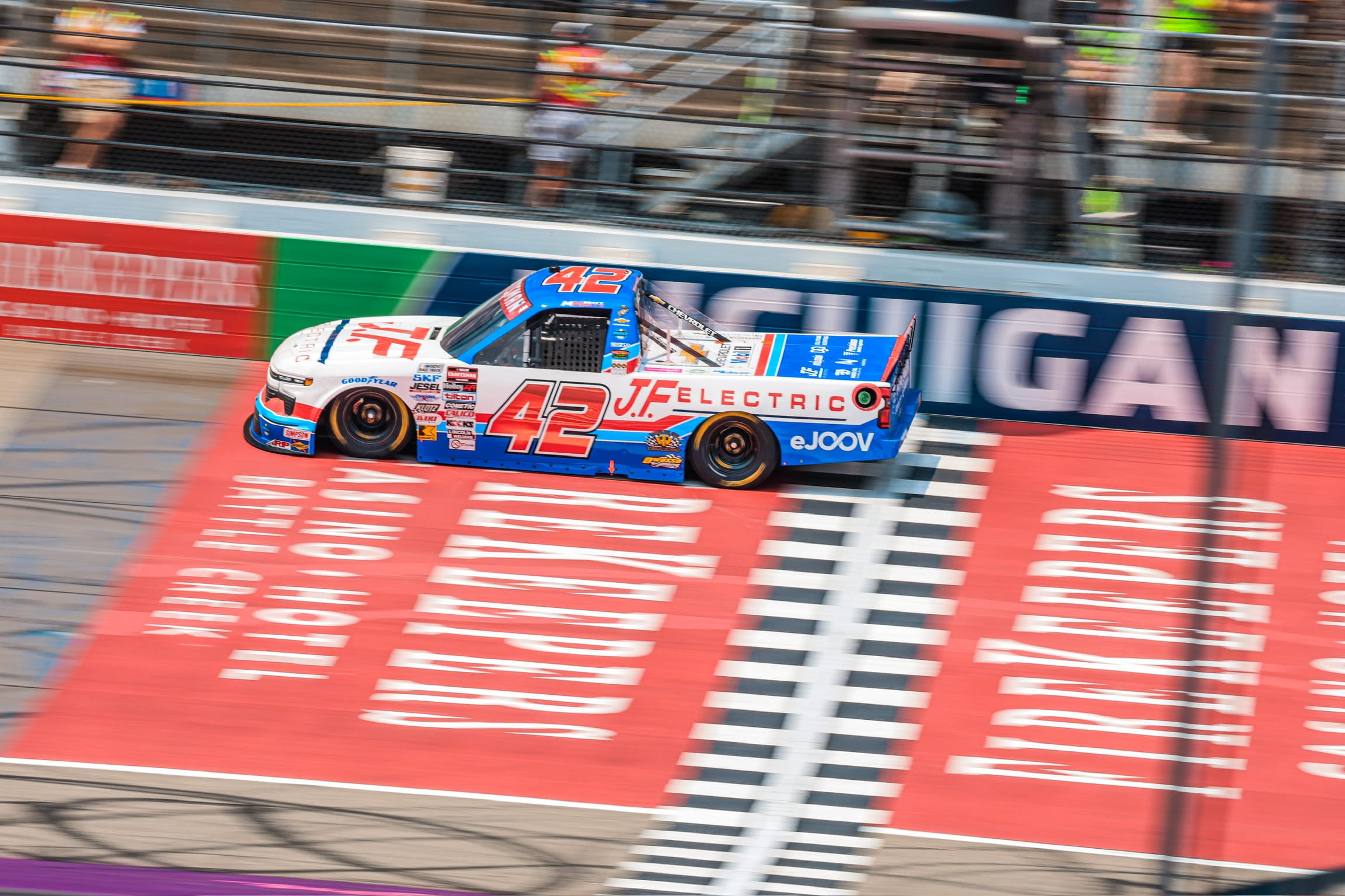 On the Truck: Mills’ No. 42 Chevrolet Silverado RST will race with support from longtime partners J.F. Electric, who will be featured as a co-branded primary sponsor along with DQS Solutions & Staffing and Precision Vehicle Logistics.