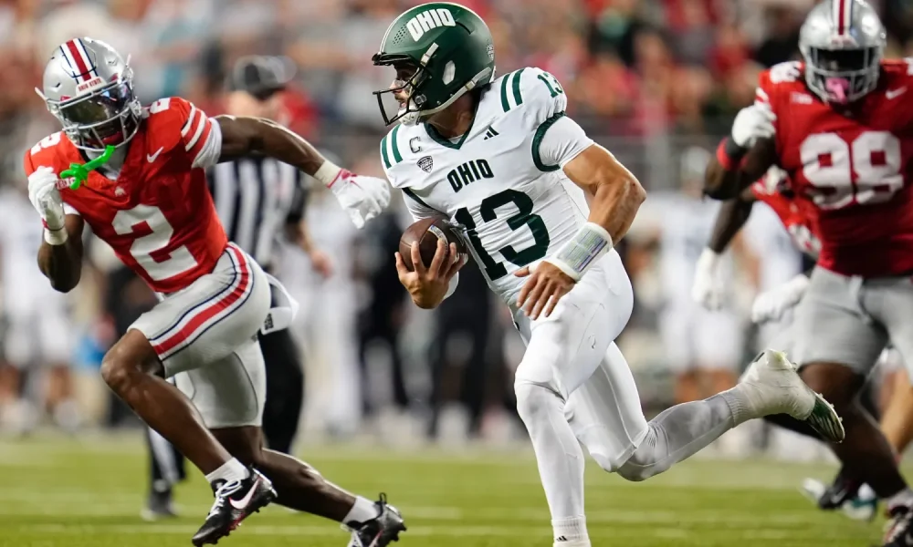 © Adam Cairns/Columbus Dispatch / USA TODAY NETWORK via Imagn Images Ohio quarterback Parker Navarro is reportedly seeking a seventh season of college football. If granted,...