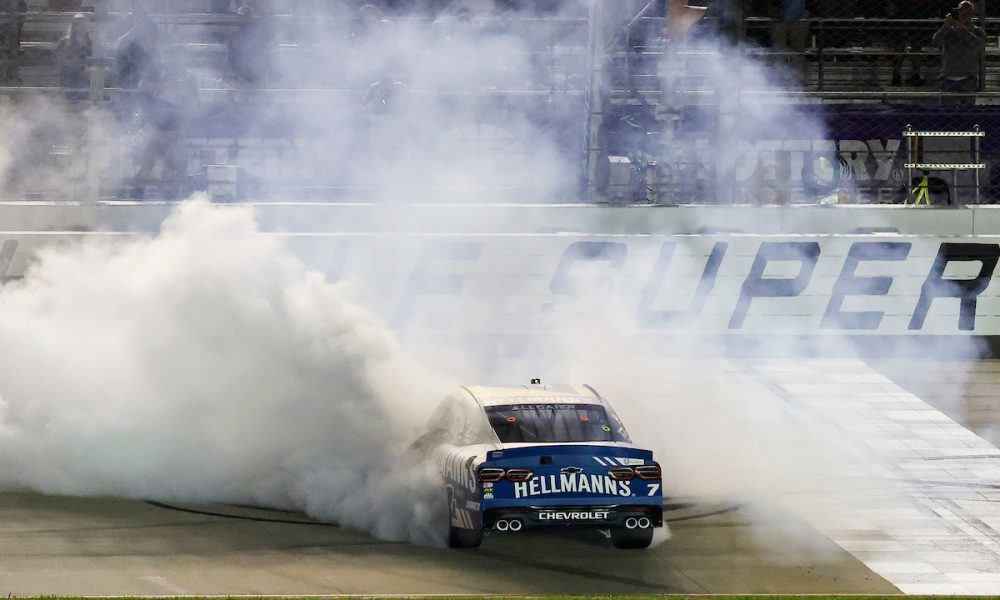 Justin Allgaier improved his resume for “Father of the Year” on Saturday night, earning a second Gibson guitar trophy – one for each of his daughters...