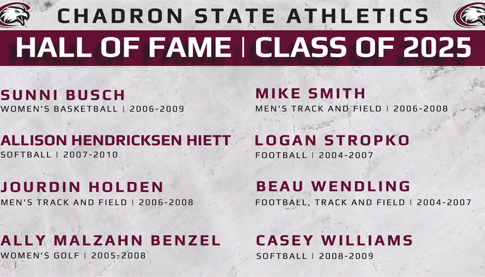 The Class of 2025 Chadron State Hall of Famers are, in alphabetical order – Sunni Busch (women’s basketball, 2006-2009), Allison Hendricksen Hiett (softball, 2007-2010), Jourdin Holden...