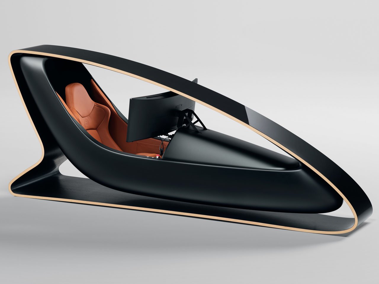 Prodrive is no stranger to designing racing simulators, and the latest creation is a testament to the craft of Britain’s most celebrated artisans. Adopting the technique used in the construction of their race cars, the Oxfordshire-based motorsport and engineering group has crafted the racing sim from a carbon fiber monocoque that seems to float inside the wooden housing designed by superyacht builder Pendennis. The high-end cockpit is surrounded by a hoop constructed out of 16 layers of steam-formed beech wood. That invincible finish comes from the lacquered gloss black layering that you can easily compare to a grand piano’s finish.