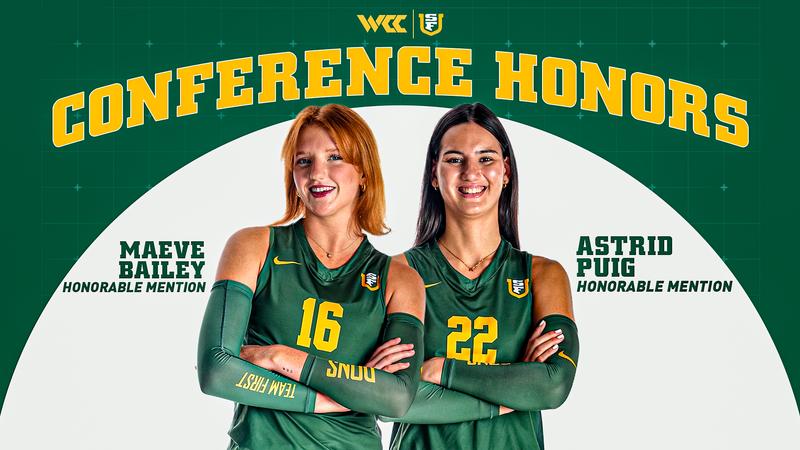 SAN BRUNO, Calif. – The University of San Francisco volleyball team landed two West Coast Conference All-Conference awards, announced by the league Monday afternoon, as Maeve Bailey and Astrid Puig earned Honorable Mention selections.
