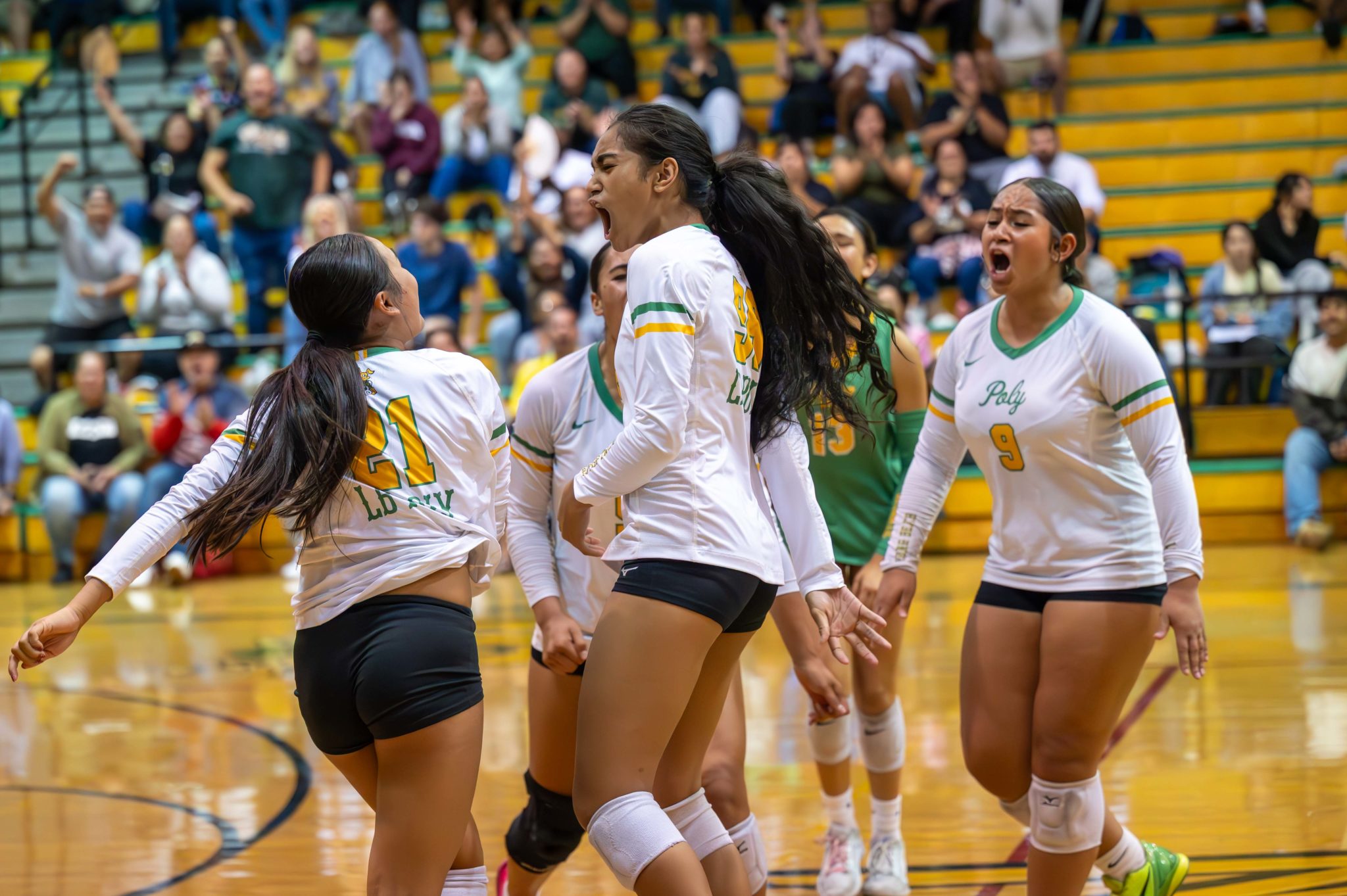 “They’ve been practicing with us, doing double duty practices all season,” said Poly coach Gerald Aquiningoc. “We’re very familiar with what they can do, and it’s honestly like, next girl up. We have Plans A, B, C, D, and tonight we had to work all the way through. I’m really proud of them being able to come in here and execute.”