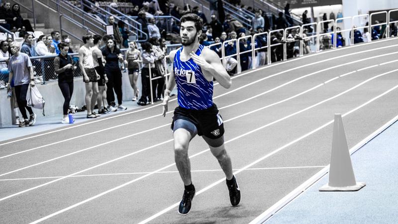 Junior Jacob Schmader (Limington, Maine) and senior Noah Batoosingh (Scarborough, Maine) led a strong effort in the 300 meters, finishing third (36.82) and fifth (37.57), respectively, to pace the sprint group on the flat 200-meter oval.