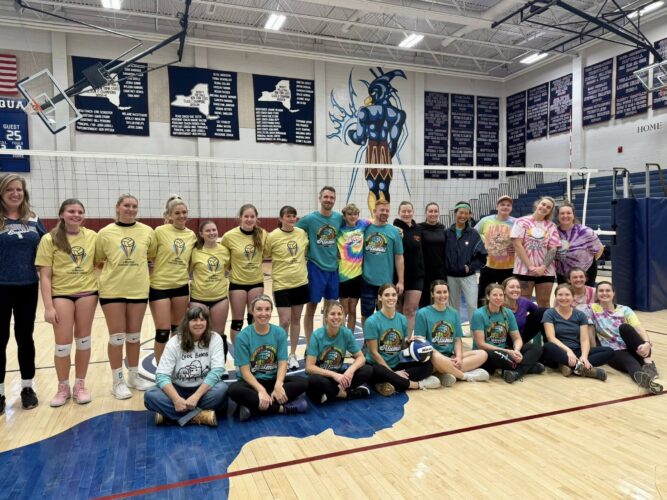 Varsity Volleyball coach Joanne Meadows came up with the idea a few months ago with the help of her brothers, David Sturm, who coaches Junior Varsity, and Eric Sturm who is the assistant coach for both teams. The goal was to create an opportunity for both former and current players to reconnect, play for fun, and celebrate the tradition of volleyball at Chautauqua Lake Central School.