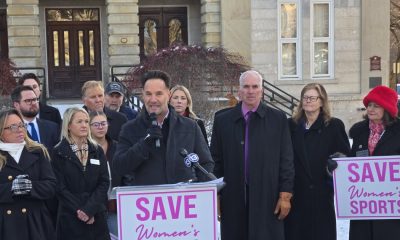 Sean Lechner and others, including Republican state legislators and candidates for office, who spoke at a Dec. 8 press conference in Monroe called for a ban on allowing transgender girls to participate in girls sports, saying they have an unfair advantage against cis-gender girls, or girls whose gender identity aligns with the gender they were assigned at birth.