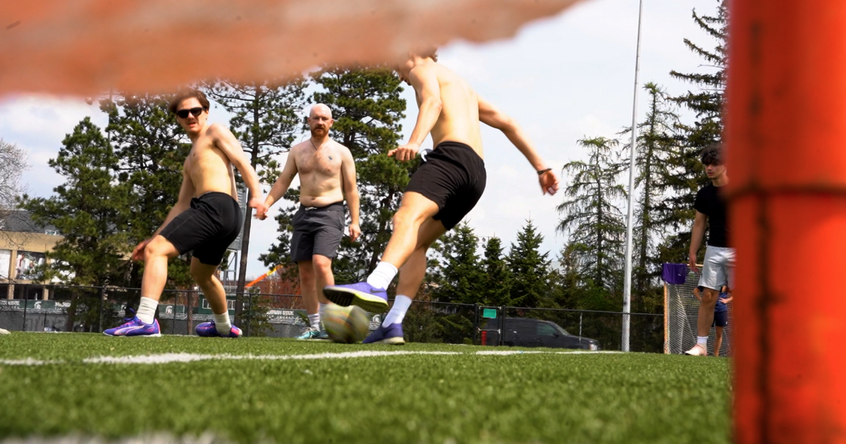 Many students find a remedy on the soccer pitch, where everyone speaks the language of the game. The Munn turf field is a melting pot of different styles of play and international team jerseys proudly worn.